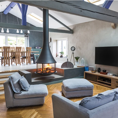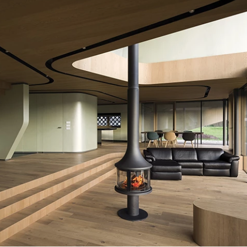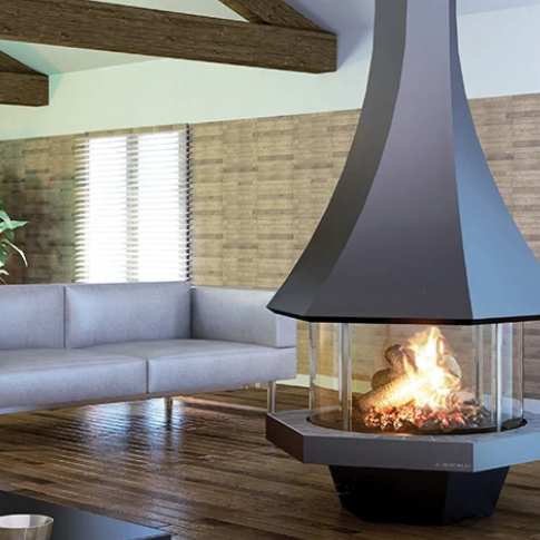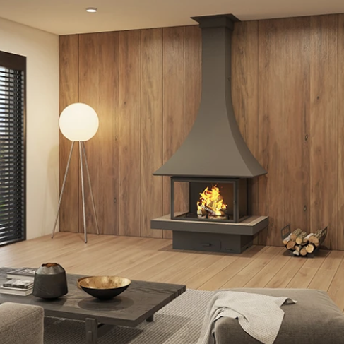La EVA adaptée aux angles de vos pièces, avec son foyer fermé créant une atmosphère chaleureuse.
