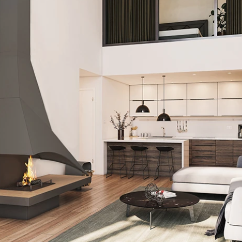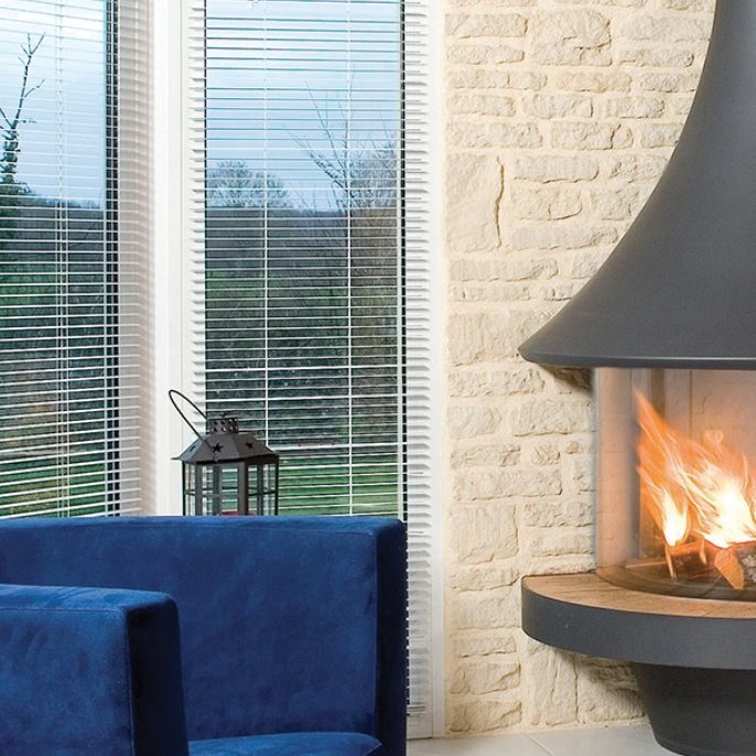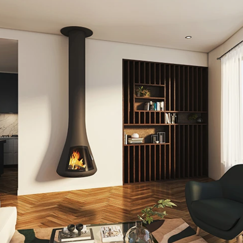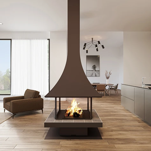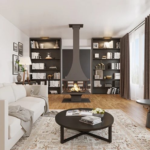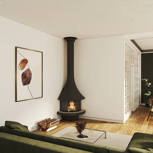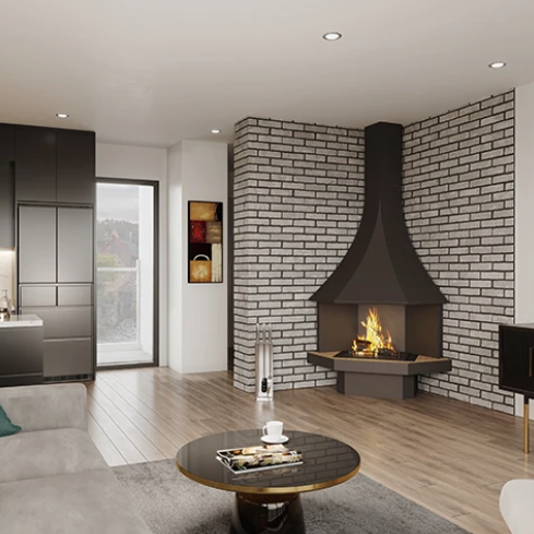 La EVA adaptée aux angles de vos pièces, avec son foyer fermé créant une atmosphère chaleureuse.