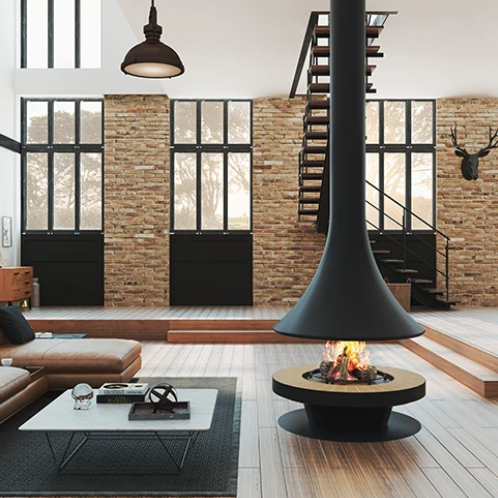1er modèle du créateur de cheminée métal Jean Claude Bordelet en foyer ouvert .