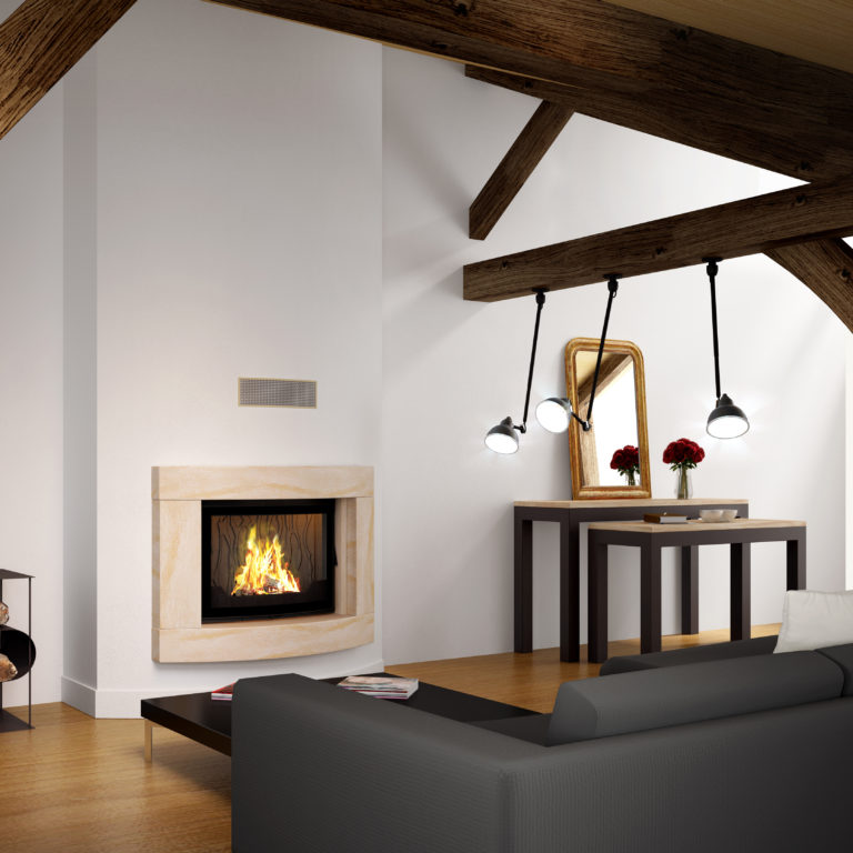 LIMOISE, Cheminée de face ou d’angle. En marbre gris scandinave adouci…