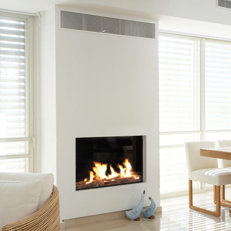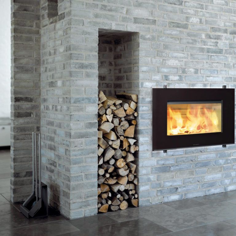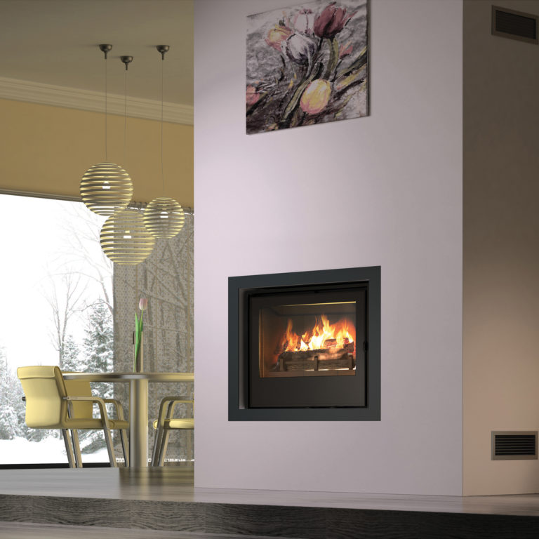 CLEAR 75, foyer façade en acier gris. Chauffage breveté Multifuoco …