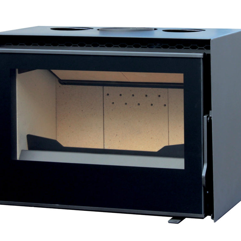 H 1600 XXL, foyer façade en acier gris. Chauffage breveté Multifuoco …
