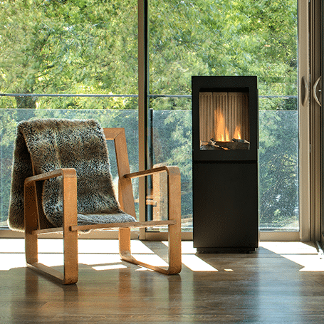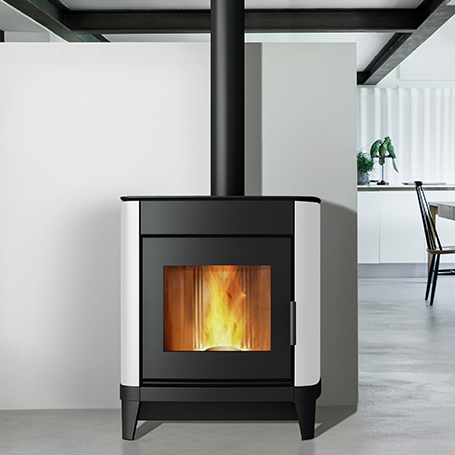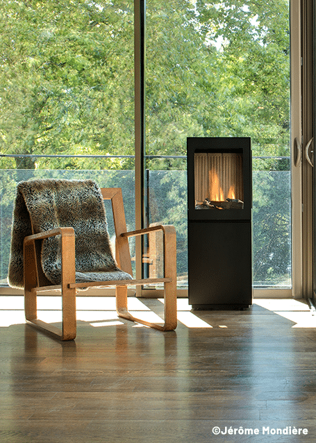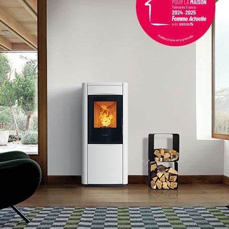 Un poêle au design cubique et élégant, de la gamme Premium Line.