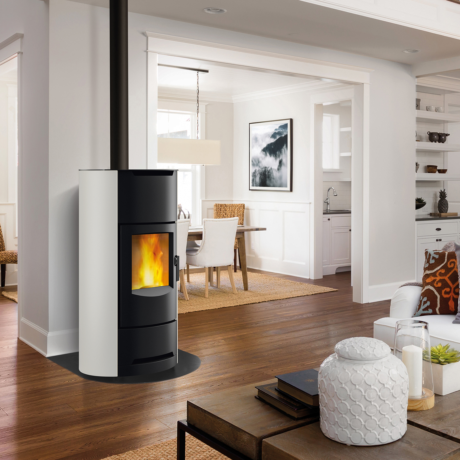 Le poêle à granulés P122T de Piazzetta allie design élégant et haute performance.