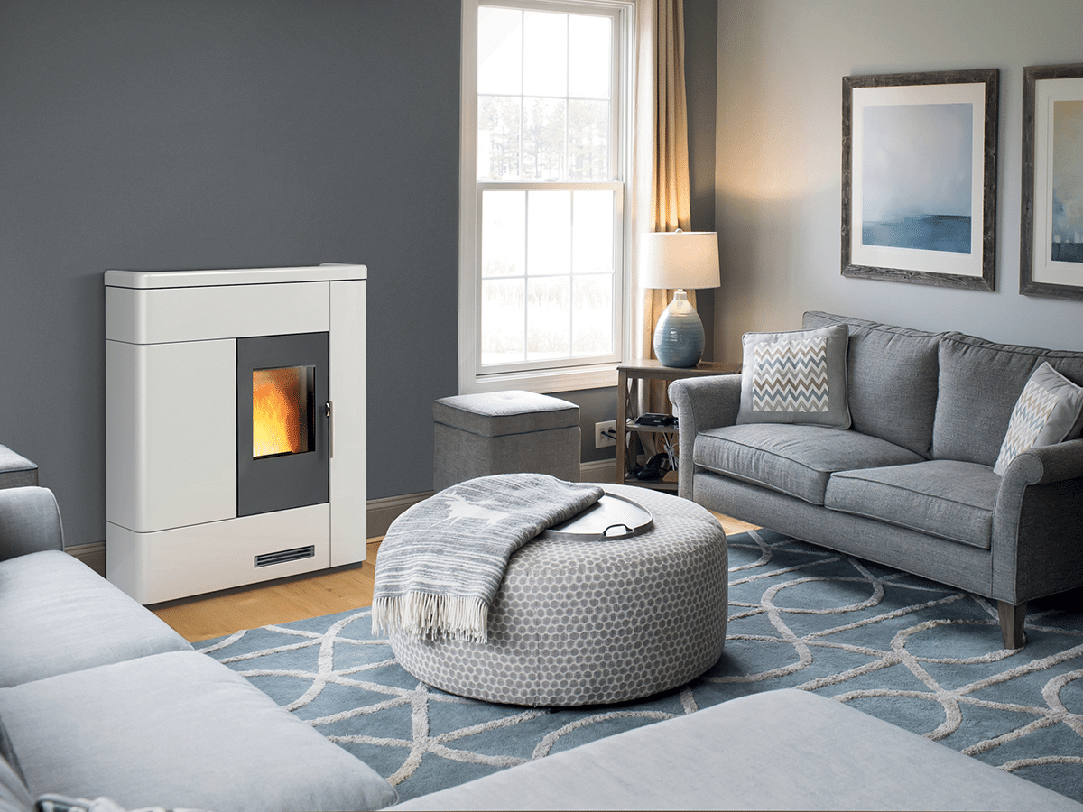 Poêle à granulés P136 avec un revêtement en acier et plateau supérieur en céramique, au design épuré. Très facile d’utilisation grâce aux commandes simplifiées du panneau numérique. Une fonction Mode Silence permet d’utiliser la convection naturelle pour chauffer la pièce. Son profil plat, à l’encombrement réduit, permet une installation au ras du mur.