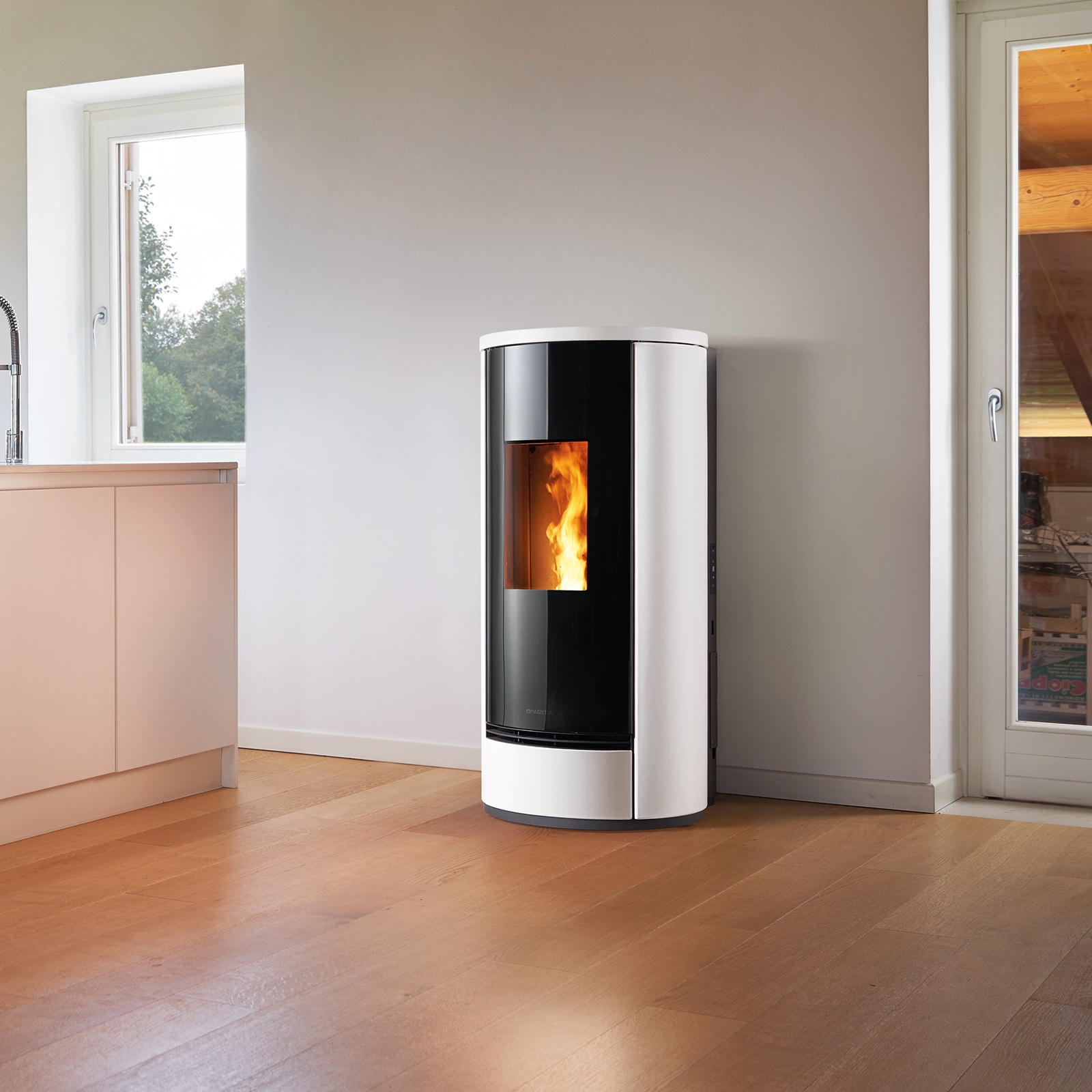 Le poêle à granulés P230T peut être installé au ras du mur ou dans un angle. Il est recouvert de faïence. Il est équipé de la fonction Multicomfort Plus qui permet de paramétrer, dans une pièce chauffée par canalisation, une température ambiante dédiée et différente de celle de la pièce où est installé le poêle.