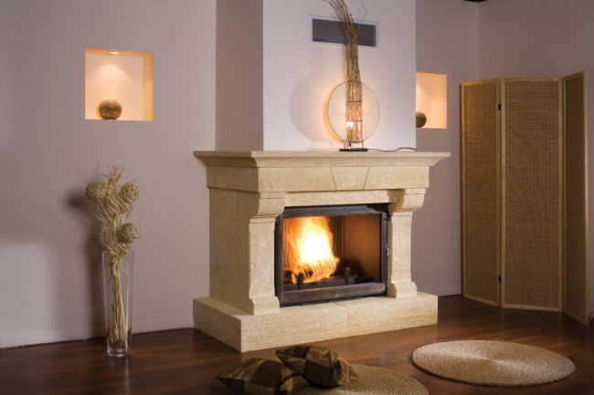 RONSAC, Cheminée traditionnelle de face en pierre Lomagne..