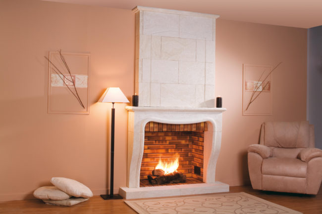 LIMA, Cheminée de pan coupé en pierre Estaillade…